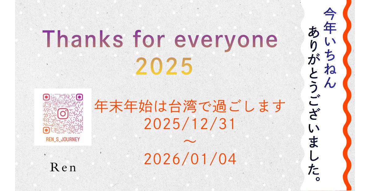 そして、年末年始はブログもお休みしますので、次回は1月5日から再開します🇹🇼