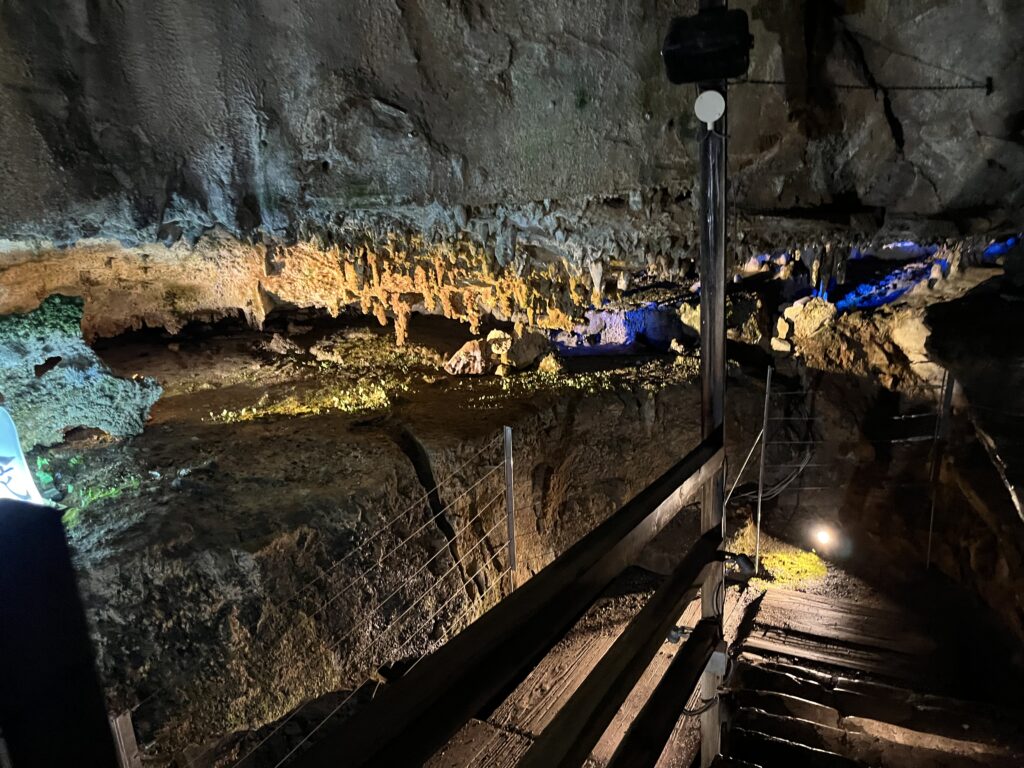 洞窟の中は、様々な色のライトで照らされていて、とっても神秘的。